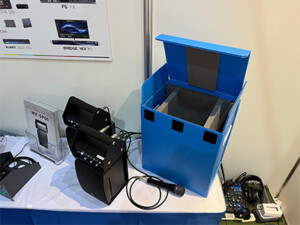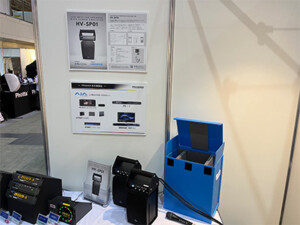 弊社新製品HV-SP01は、オプション品のマスターボリュームリモートボックス、ACアダプター、収納用段プラケースと共に展示しました。